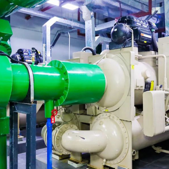 ②更換高效能主機(jī)。原有主機(jī)設(shè)備老舊,能效低,更換一臺(tái)磁懸浮主機(jī),并接入智控系統(tǒng)。相對(duì)于普通主機(jī)來(lái)說(shuō),磁懸浮主機(jī)0摩擦0耗損,噪音更低。同時(shí)利用智控系統(tǒng),實(shí)時(shí)監(jiān)測(cè)主機(jī)運(yùn)行狀態(tài),智能調(diào)控運(yùn)行需求,延長(zhǎng)和提高了主機(jī)機(jī)組壽命和能效。