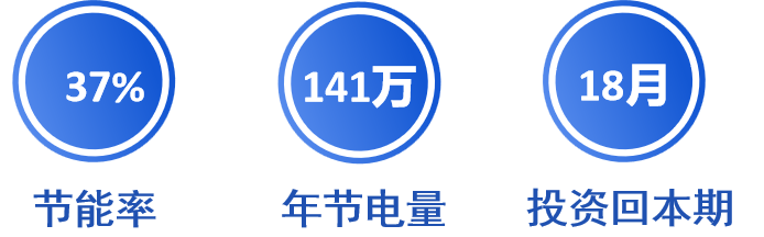 節(jié)能率達(dá)到37%,實(shí)現(xiàn)節(jié)電141萬kwh/年,節(jié)省電費(fèi)120萬元/年,超額完成節(jié)能目標(biāo)!