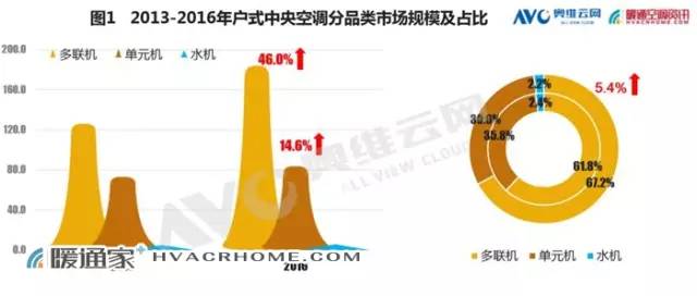 2016年,多聯(lián)機(jī)在戶(hù)式中央空調(diào)市場(chǎng)中,相比單元機(jī)和戶(hù)式水機(jī),其規(guī)模最大,增速最快。主要是由于其自身既不影響裝修美觀又具有優(yōu)秀效果,同時(shí),還受到消費(fèi)升級(jí)的影響。從市場(chǎng)份額來(lái)看,2016年多聯(lián)機(jī)在戶(hù)式中央空調(diào)的比重達(dá)到67.2%,同比上升5.5個(gè)百分點(diǎn)。與此同時(shí),在中央空調(diào)整體市場(chǎng)中多聯(lián)機(jī)占比也達(dá)到將近50%。這說(shuō)明,多聯(lián)機(jī)市場(chǎng)無(wú)論是在整體市場(chǎng),還是在家裝領(lǐng)域都有著舉足輕重的地位。除此之外,戶(hù)式單元機(jī)14.6%的低調(diào)增長(zhǎng),也使其成為提升戶(hù)式中央空調(diào)增長(zhǎng)不可或缺的一部分。